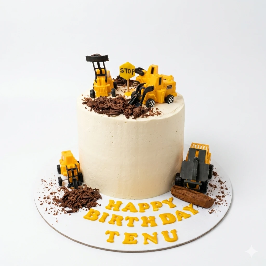 දරුවා ගේ උපන්දිනය වඩාත් වර්ණවත් කිරීමට, කුඩා පිරිමි ළමුන් වඩාත් කැමති ඉදිකිරීම් යන්ත්රෝපකරණ සහිත, අලංකාර Cream, Yellow, සහ Dark Brown පැහැයන්ගෙන් හැඩ වූ, "Happy Birthday (Name) " යනුවෙන් සිංහලෙන් හෝ ඉංග්රීසියෙන් සඳහන් කර නිර්මාණය කළ මේ කේක් එක පිරිනමන්න. ඔබේ විශේෂ දිනය තවත් අමතක නොවන එකක් කරනු නිසැකයි
